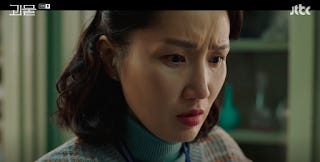 Because of all that, there's something admirable in her recklessness. She's had enough of Dong-sik being the only one carrying the can for the entire village. It's a burden too much for one man to bear. Although why that man chooses to take it all on himself seems incomprehensible to the onlooker. Fortunately for her, Dong-sik catches on to the perpetrator's trick. At the end of Episode 8, there's overwhelming evidence to say that the body buried at the back of her shop, is her missing mother's. The show doesn't tell us how they know but those in the know must surmise that old habits die hard.