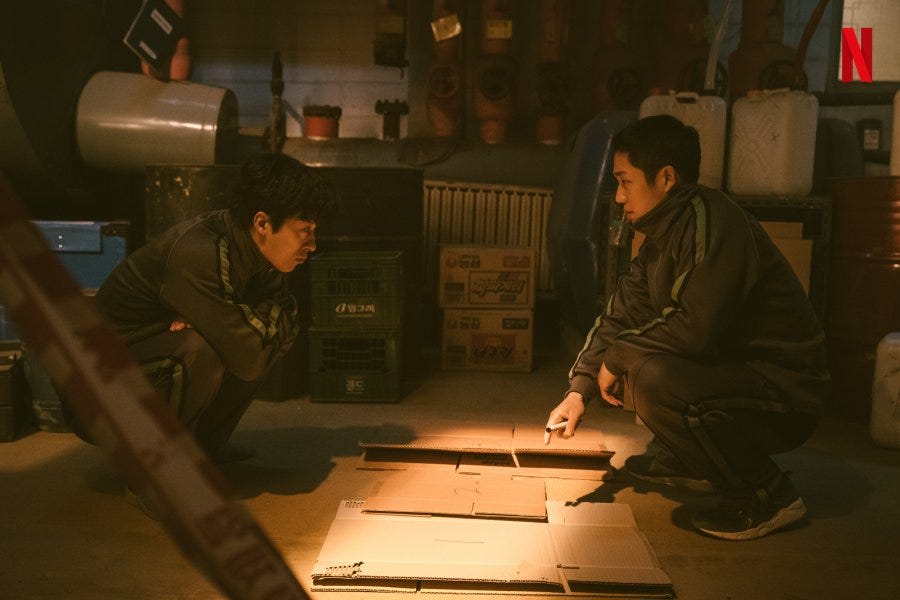 Jung Hae-in plays Ahn Jun-ho recently recruited by his military masters to track down deserters. He is paired up with Han Ho-yul (Koo Kyu-hwan) who is in part the welcomed comic relief of this bleak cityscape of guilt and abject injustice. Their camaraderie of opposites is pleasing to watch as they navigate the complexities of the jobs with which they have been tasked. The duo are assigned specific cases of conscripted men who overstay their leave or do a runner one fine evening over the barbed wire fence when no one is watching. Each assignment comes with a story palpable with emotions — a combination of the humourous, heartwarming, harrowing and ultimately tragic. Life in the barracks is like a thoughtful war film except that the mob running the concentration camps are your compatriots. Bullying is pure mental torture and escape comes only when you are discharged. Here the showrunners are not content just with critiquing the armed forces but the entirety of South Korean society intimating more than once that the abuses in the barracks are a spillover of the dysfunctionality in society at large.