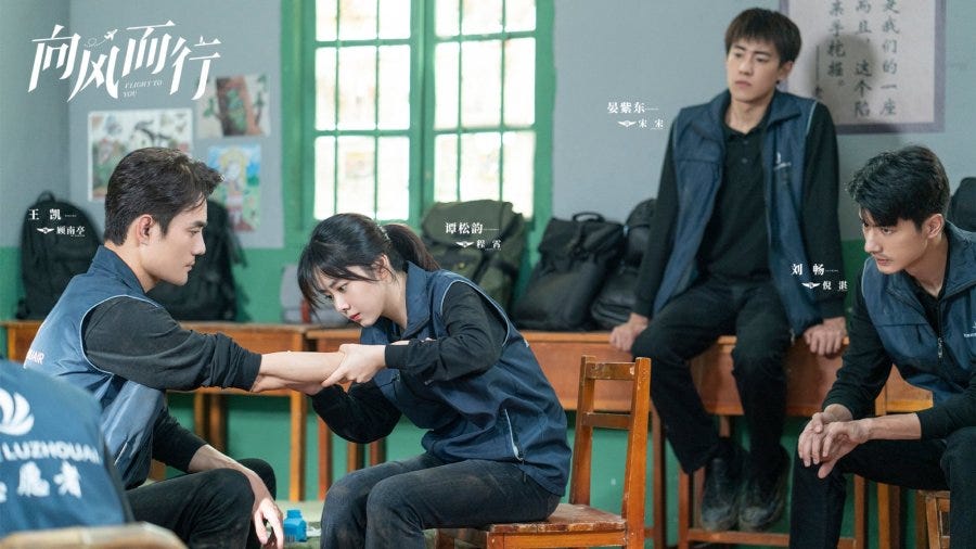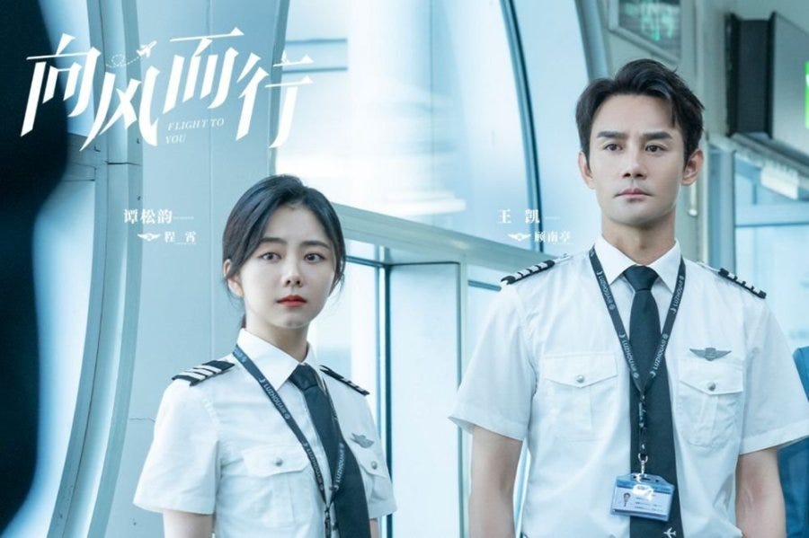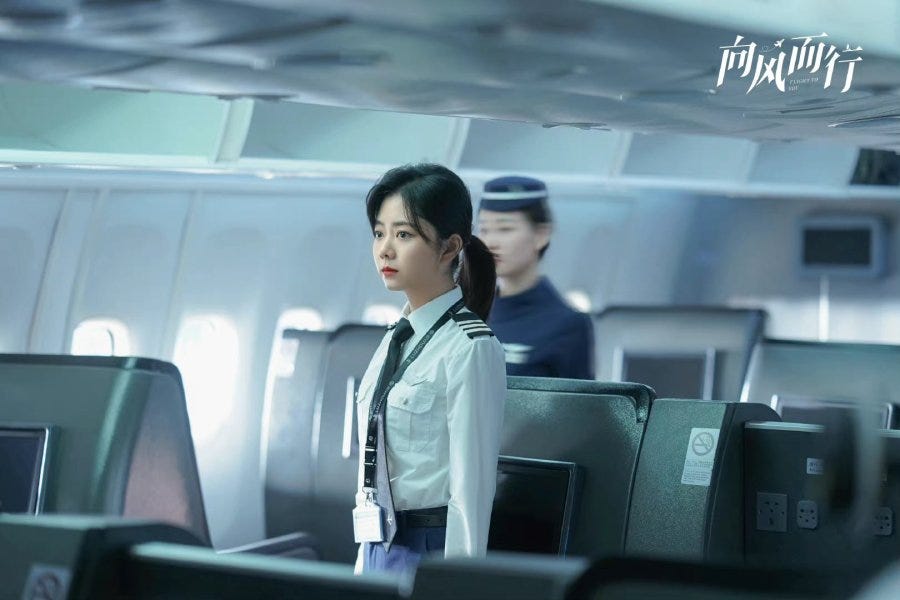 Despite being heavy on the romance, I maintain that the best thing about this drama is the logistical aspects of aviation — the procedures, the decision making side of things even the political side of managing an airline. The romance, I imagine, is the sugar to make the medicine go down but it tends to be the most prosaic part of the show, made even more vapid by the love polygon that emerges to expedite matters. I know for a fact that people do find love in the workplace and that adulterous relationships formed in the workplace are often far more common than most of us think. On the back of all of that, we have a male lead who is dragging his feet despite being actively (and obviously) pursued by a subordinate-apprentice and a childhood friend. To compound things further, the woman that he actually likes has another admirer in the form of his best friend. The conclusion is clear. Gu Nanting might be a decisive dictator in the cockpit but concerning matters of the heart, he errs on being fainthearted. It’s hard for him to say “no” to one and “yes” to the other. I don’t know if such men exist in real life but he’s been saddled with a trauma — a deceased girlfriend who crashed her plane — as the rationale for unerring obsession with safety. As far as excuses go to fob off women, it’s not a bad one but it’s not the only excuse he has. It might not be a good look to be involved with an apprentice although no one has brought that up as an issue so far except his only rival, Ni Zhan, who has no reason to be generous.
