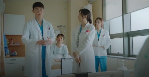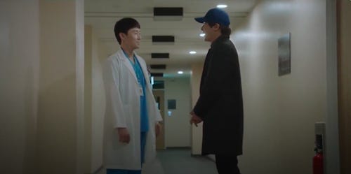 Everyone who has read anything I've written about the show knows that he's one of my favourites. Partly because of his heroic trajectory, partly because he's a deeply caring individual. He has been to the school of hard knocks and come out swinging. In most ways, he's a much more fleshed out character than the likes of Ik-jun, Song-hwa and even Jeong-won. He's very down-to-earth, and as a clinician he is still finding his rhythm.