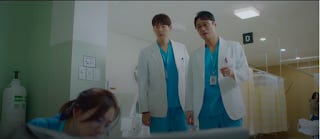 In terms of his larger personal trajectory, we also see Jeong-won pulling in to the hospital hurriedly, not once but twice when called in for an emergency, signifying even in these early days what his true passion and calling is.