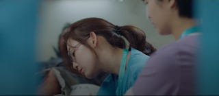 Pulling Gyeo-ul to one side and drawing the curtains around them, Jeong-won demonstrates a sensitivity and consideration for her dignity as a doctor but when Dr Bong interrupts this exchange, he rips open the curtain and asks them what they've been up to in a way that suggests that he has inadvertently intruded onto a moment of unspoken intimacy. It is highly suggestive and on hindsight it signals the beginnings of what becomes the Winter Garden dynamic.