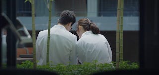 This is somewhat startling especially because of what happened in the previous episode when he took her aside to lecture her on a more thoughtful way to communicate with patients. Rather than being resentful for being told off, her admiration for the man remains steadfast. Jang Gyeo-ul is made of sterner stuff and shows herself capable of being objective in the face of criticism. Unlike Lizzy Bennet whose pride was wounded by Mr Darcy which caused her to become prejudiced against him, Gyeo-ul was evidently undeterred by his rebuke. It is surprising that she used the expression noblesse oblige in reference to Jeong-won. In all likelihood she had no knowledge of the Daddy-Long-Legs programme but then not even his friends did. Yet in her work interactions with him she was already able to identify many of his strengths. It wasn't a case of a starry-eyed subordinate crushing on her supervisor because of his charm or good looks. There was something of substance at work here. This was also the point in the story where I started to speculate that the writer was putting out a romance thread between these two. Jang Gyeo-ul gets Ahn Jeong-won. In ways even his closest friends don't. She, as I've come to believe, is his other half. A Yin to his Yang.