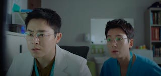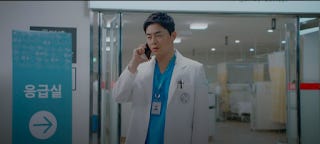 Another romance thread that appears to be brewing comes from the OBGYN department. Yang Seok-hyeong is a natural loner but a resident (or two) may have set their sights on him. Her nickname for him is instructive: "the sloth" and seeing him lying in Song-hwa's office trying to nap while the others are busy doing things around him does give weight to the designation. He is certainly someone not looking for a relationship at this point. But as this drama keeps telling us: Romance comes to those who least expect it or want it.