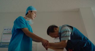 While we have Really Bad Dads on one side, this episode also features Decent Dads who clearly serve as exemplary narrative contrasts. What does a good father look like then? Transplant story of the week sees a former detective O Jae-il refusing his daughter's liver because he is racked with guilt at the thought he has to rely on her to survive. It's deeply moving storyline that had me tearing up. I imagine the show wants to say this is what a loving family looks like. Even the normally unflappable Ik-jun was in tears because of the family's interaction. The other dad that the show highlights is the father of the endocarditis patient, Kim Tae-jin. These are not wealthy people by any stretch of the imagination. The father himself has been undergoing chemo. The procedure, the insertion of a prosthetic valve will cost them and yet the father immediately takes hold of Jun-wan's hand and begs him to use the best and the most expensive valve money can buy. This is how people who love each other act. Money is no object. Self-sacrifice is not even considered to be as such.