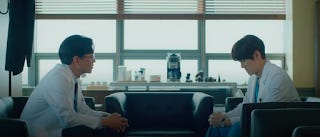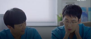 In Seok-hyeong's case where romance doesn't dominate his individual trajectory it is still being developed in the fringes with Min-ha. I don't have much doubt that he likes her from looking at their interactions but the family baggage is intrusive. I am surprised though that there aren't more people who pair him off with Song-hwa because it certainly makes far more sense than pairing her with Jeong-won. Seok-hyeong often has scenes with her with just the two of them. She's a great confidant and comfort to him. His mother really likes her and often tries to set them up. On top of that he had a crush on her while they were undergraduates. It does beg the question of whether if it's because he isn't classically good-looking that he's not even considered a contender.