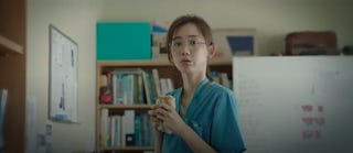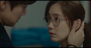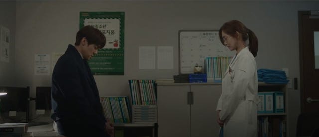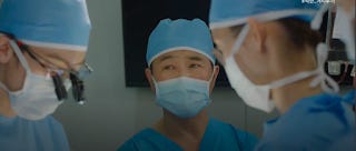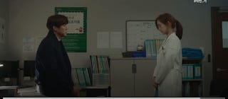 What is more obvious during the rewatch is the fact that he sat on his final decision to stay for at least 3 weeks before she out of sheer desperation initiated the confession. That's a fair bit of time. It does beg the question as to why he didn't make his move. Fear, it seems to me was a factor. He simply had no idea how to approach her after being accustomed to maintaining their working relationship for so long. He must have thought long and hard in his spare moments about whether or not he was prepared to change the dynamic between them so radically. Perhaps she'd moved on from him. Did he really want to turn a collegial relationship awkward? He was enjoying having her around judging by the anaesthetist's comments. Did he want to lose that kind of access? All those kinds of things must have gone through his headspace at some point. Furthermore, there was the lying and pretending to account for. Even while Gyeo-ul is highly resilient emotionally, she would have been hurt by the deception. That's why the skinship and the liplocking that came afterwards felt like the logical resolution to the push and pull.