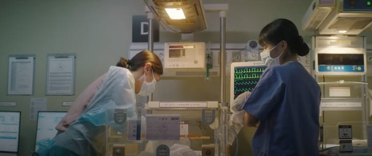 I’d been thinking that we haven’t seen much of the emergency team this season, Gwang-hyeon in particular because his gossip gatherings have been made redundant. Lo and behold we had an episode dedicated to celebrating the emergency medics and the critical care that they give to give patients a fighting chance. While it was exciting to see Jun-wan and Ik-jun work collaboratively for the first time onscreen, the efforts of the emergency staff should not be underestimated as the patient’s first point of contact. At the end of the day it’s a team effort. Sure there might be stars but without the support act, the hospital won’t be the well-oiled machine that it makes claims to be. The same goes for the neonatal nurses that were extensively featured mainly from Jeong-won’s perspective. These are the unsung heroes of the hospital.