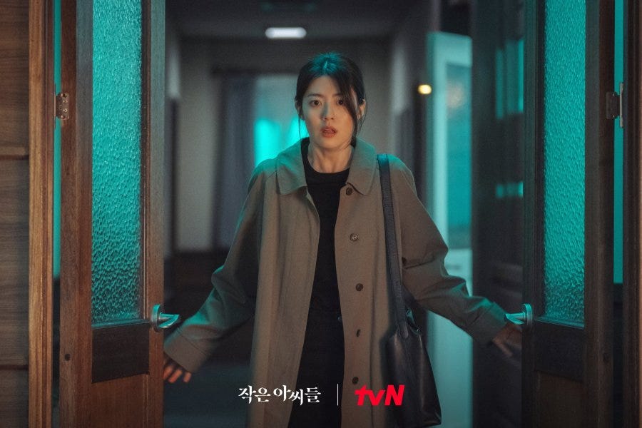 It is apropos that Won Sang-a is not only an actress and puppet master but the mistress of this elaborate labyrinth of occurrences that we’ve been privy to these past few weeks. It makes sense that someone is actively directing things from behind the scenes, doling out scripts to a large cast. while pulling the sisters onto a stage for which they are entirely unprepared. On the other hand it does seem like a bridge too far that Won Sang-a has been so ubiquitous, meticulously plotting her “secret plays” (especially in Singapore) without the knowledge of her paranoid, controlling husband. Still it does seem like she has a penchant for picking choice candidates to groom which includes Jin Hwa-young — to set into motion self-perpetuating narratives that provide respite from her humdrum existence as the wife of a would-be politician on a campaign trail. Or so she says.