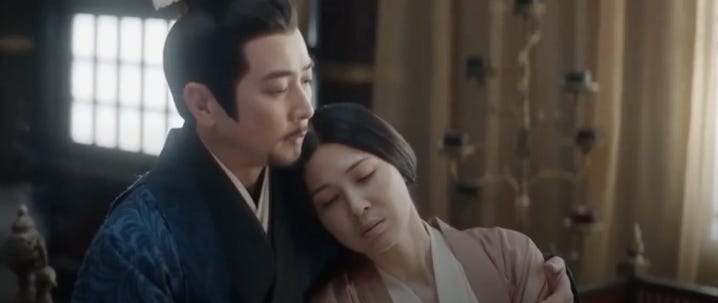 The drama is full of contrasts and none so obvious as the emperor’s two wives. It’s certainly amazing that they get on so well but it helps that both are fundamentally decent women who stay out of power plays as much as possible. On the one hand Empress Xuan’s mournful pessimism doesn’t sit comfortably with me whereas the empress formerly known as Consort Yue’s no-nonsense approach to life is humorous and far more relatable. In many ways both women have been handed a raw deal in this threesome but for reasons of personality perhaps the Empress Xuan has never made peace with the arrangement. I’m not convinced that she’s really the unloved tragic figure she paints herself to be especially because she happens to be the poster child for tv harems but everyone has blind spots of one kind or another. Evidently the show wanted to give her a nice send off which is why her deathbed scene went on seemingly forever (about 14 minutes) when I would rather have had more time watching the leads resolving their issues.