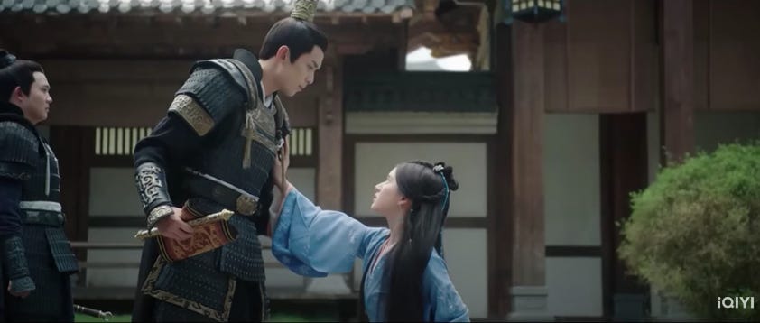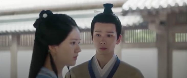 The most painful aspect of two otherwise amusing episodes is that Ling Zisheng knows exactly what he wants but the woman he loves, Cheng Shaoshang is much less certain. There is something inherent about selflessness that is excruciating to watch. I know I’m supposed to be moved by these grand gestures displayed by the man who loves much and yet there’s a pervasive sense of frustration accompanying this knowledge. Zisheng’s generosity towards the would-be-couple before he leaves to suppress an insurrection is shown to be extraordinary… out-of-this-world in fact. In other words… it is as large as the galaxy. He uses his clout with the emperor to protect Niaoniao before he departs. All of this positions him in stark contrast to the doe-eyed, uninspiring Lou Yao who is incapable even of standing up to his domineering relatives.