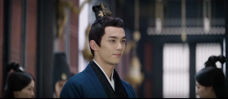 When I see the mischievous bedroom antics of the usually stoic Ling Buyi, I am astounded that the lad that played Fei Liu in Nirvana in Fire is now a mature young man who flirts shamelessly with his fiancee in such an intimate setting. I don’t even remember Ashile Sun of The Long Ballad attempting anything on this scale. Wu Lei has certainly left the role of Fei Liu behind forever with these moments in the show. Ling Buyi who is usually on top of everything finds himself in a position only a man who has gone through the ceremonial rites of marriage should be in. He has Niaoniao lying in a vulnerable position and yet he refers to his 命门 ming men, his gate of vitality, (as it is known in traditional Chinese medicine) the area thought to be between the kidneys, as hers to command. The significance of that also comes from the fact that ming men is bound to libido and reproduction. The region ignites, it is believed, the maturing of sexual energy and fertility. With that gesture he is assuring her that he won’t take advantage of her and that he is completely at her disposal. As proof of his unerring devotion, he allows himself to be the opening act in the empress’ birthday bash, something that even the emperor can’t get him to do.