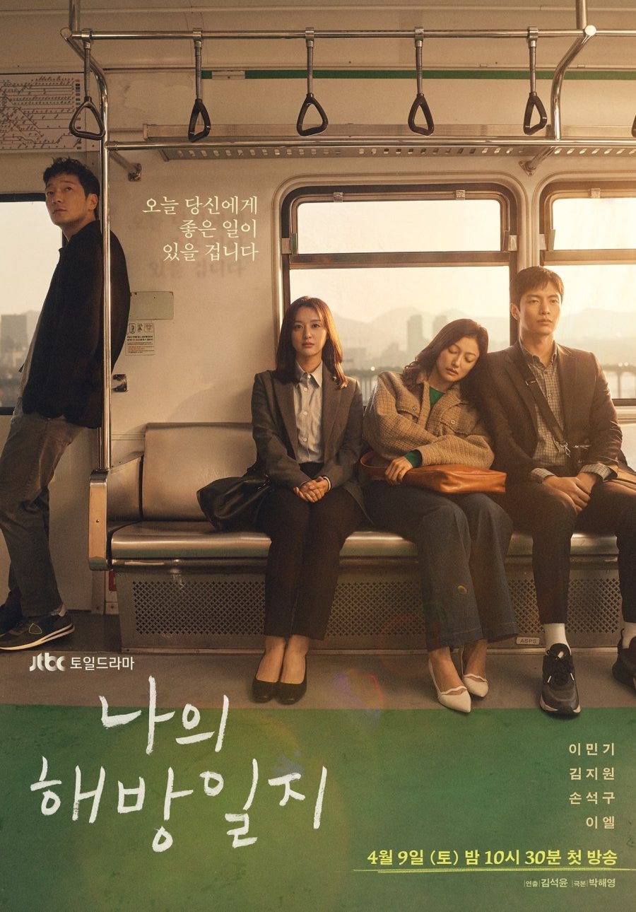 At work Mi-jeong does very little mixing with her colleagues. She’s the quintessential loner and on some level, prefers it that way. The company she works for insists that everyone belong to an outside of work hours club of which there are plenty to choose from. She doesn’t want to and uses the long commute as an excuse. The club organizer however is annoyingly persistent. So Mi-jeong and two men from other departments eventually come together to form the Liberation Club which involves little more than sitting around and waxing psychological about existential questions. Not long afterwards the club nanny insists there needs to be evidence of activity for the club to be legit so the trio each procure a diary and start their liberation notes. One of the club’s members is Jo Tae-hun, a single dad who also happens to be the brother of Ki-jeong’s former classmate.