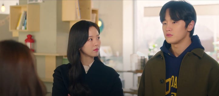 I’ve gradually come respect for Hye Sun, former fox turned human. Kang Ha-na is reliably awesome in the role. Despite all appearances and her lack of academic smarts, she has a different kind of savvy that Woo-yeon lacks. What she lacks in book learning she has obtained through interactions with humans over the millenia. Her practical knowledge of humans trumps his book learning in that regard. She’s a much better friend and human being that I originally gave her credit for. She genuinely cares about her Pox (hahaha — erroneous pronunciation leading to erroneous spelling) friend and is even showing concern for the small circle of acquaintances that are destined to be more than that.