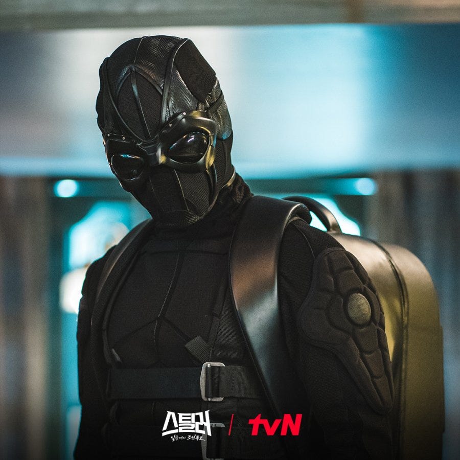 Much more fun and gleeful is Stealer: The Treasure Keeper. It’s no heavyweight offering but it doesn’t pretend to be one. It’s a good-natured romp after the fashion of Marvel’s superheroes. Joo Won (as I’ve mentioned in the recent podcast) is the titular character Hwang Dae-myung, an idealistic vigilante cat burglar who steals national treasurers from the corrupt rich by night and works as a bootlicking, beleaguered public servant by day. He is nicknamed “Skunk” by the cops — a special team dedicated to catching antiquity smugglers. The team leader (Jo Han-chul) is frustrated by the fact that his hands are tied by the antics of the baddies and soon seeks the help of the elusive Skunk who is already doing his patriotic bit. I’m not going to say or pretend that this is the best thing I’ve seen all year but it’s a wholesome lark. While the target demographic is much younger than what I am, I’m seldom wearied by the antics of the characters. While it does come off a bit cartoony in places, it doesn’t drag. Everything moves fast. (Unlike Season 2 of Taxi Driver)