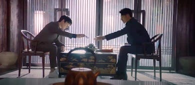 The women in the show were a mixed bag in part one. Yeah I've ranted about that in another post and there's no need to rehash all that. In Part 2 it's fortunately just Bai Haotian (Rachel Mao) aka Xiao Bai who was always much better written considering her position in that world. It's not a big secret that I was rooting for her and Wu Xie but it was never a deal breaker if nothing resulted on that front. Romance while it has its place even in something like this, was never the show's great strength especially with how the more significant women were written. They seemed more to be encumbrances or potential dangers for men who made their bread and butter living on the edge. In this context there's no room for the risk averse or a lack of teamwork. Xiao Bai, despite the age gap was developed more in line with Wu Xie's talents and personality. The UST was always there even if he tried to maintain some distance because his own future was uncertain. But much more importantly Xiao Bai was a good fit with the Iron Triangle and Co. and as the show progressed, she became part of the team and pulled her own weight where she could. She wasn't a damsel in distress. She wasn't a possible love interest. Her skill set and her maturity made her an integral part of the team winning even the respect of the cynical Pangzi/Fatty. She became one of the boys as we see at the drinking bash at the end, never getting in the way of Wu Xie's relationship with his accumulated company of adventurers.