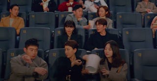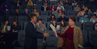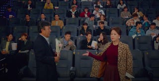 The "party" analogy makes sense to me especially because of that delightful late scene towards the end of the dramatis personae gathering (and framed) together in various units inside the cinema in anticipation of a movie. It's a lovely summation of the dynamics, themes and motifs that's been woven into the entirety of the drama. It's the show's curtain call. This moment is evocative of the Shakespearean line, "All the world's a stage/ And all the men and women are merely players;/ They have their exits and their entrances/ And one man in his time plays many parts,"