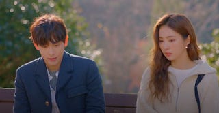 Seon-gyeom and Mi-joo on the other hand are doing much better on the honesty front 10, 11 episodes later. By the end of Episode 11, they're finally holding hands after a bout of endearing uncertain awkwardness. But the path of true love seldom runs smoothly. Certainly not in a K drama rom com. Mi-joo held back wracked with fear. Until she finally dropped her guard she was donning a mask of affected indifference rather needlessly while he was trying to prove to her that he was someone who was trustworthy in matters relating to the affairs of the heart. She pretends she doesn't want it. He knows she's pretending not to want it but continues to do whatever it takes so that she can finally comfortably stop pretending that she doesn't want it.