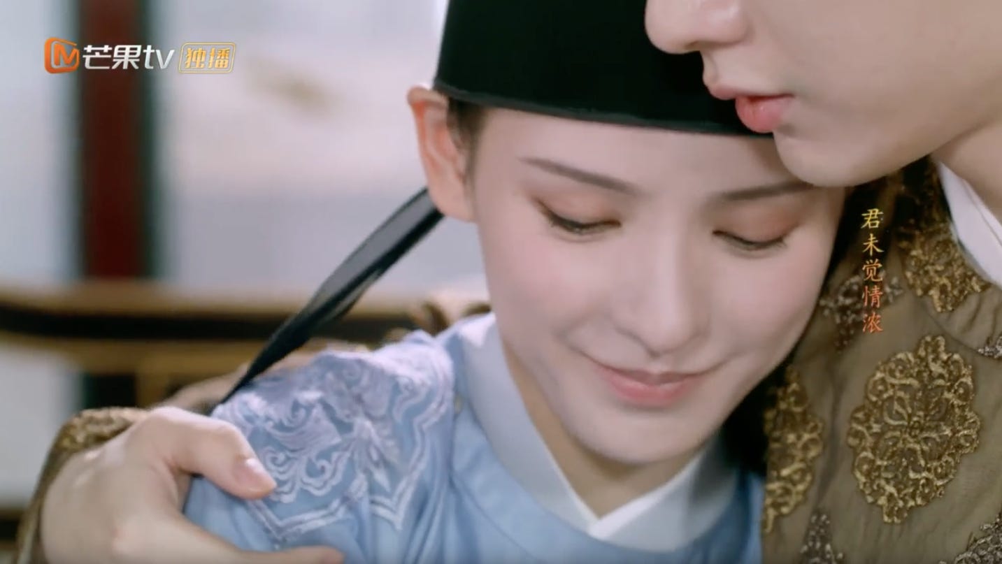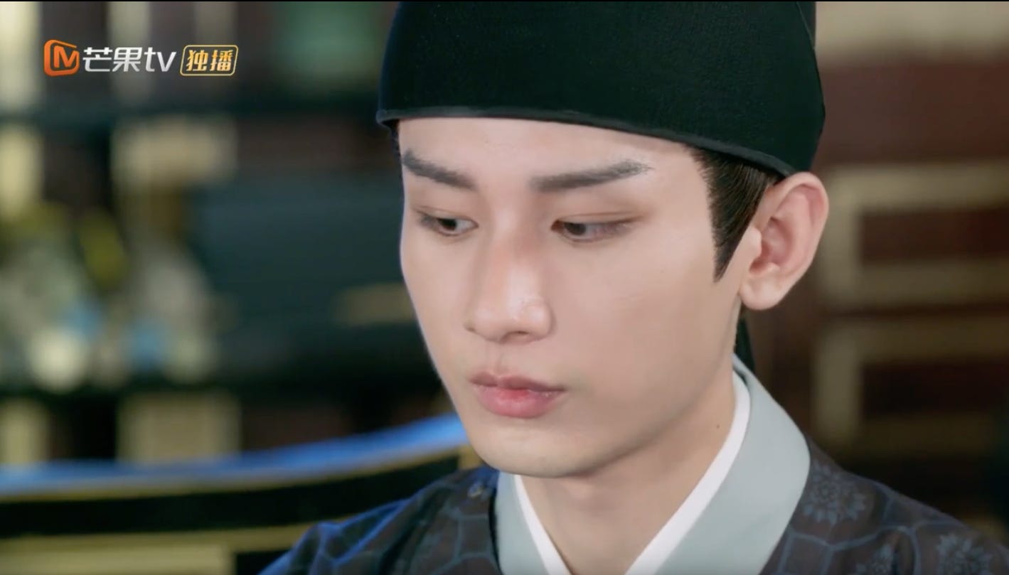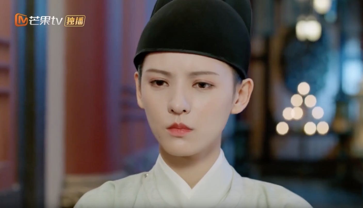 In many ways Cheng Ruoyu is an all-too familiar female trope. Cheerful, optimistic and naive in the ways of the world. More at home perhaps in a rom com than in a palace drama. She doesn’t fit comfortably in that milieu in part because she is a lost child with no memory of her past even while she descends from a patrician family. Her role as a well-placed but innocent pawn in other people’s scheming makes her the perfect foil for those who are more adept at playing this high stakes game where winning and losing is a matter of life and death. Still her good-natured if impulsive temperament is what wins her the most unlikely friends and the love of a lonely emperor. Cheng Ruoyu or Yu’er as she’s called by those closest to her, epitomizes what Rousseau would have called the authentic self which is marked by a purity in heart, childlike wonder, untainted by thoughts of vengeance, the corruption and political expediency that surrounds her. She is impulsively devoted to her duty and her cause — to protect the man sitting on the throne. A ripe candidate to move even the hardest heart. This too arouses all of the emperor’s protective instincts and drives the “push” element in their dynamic.