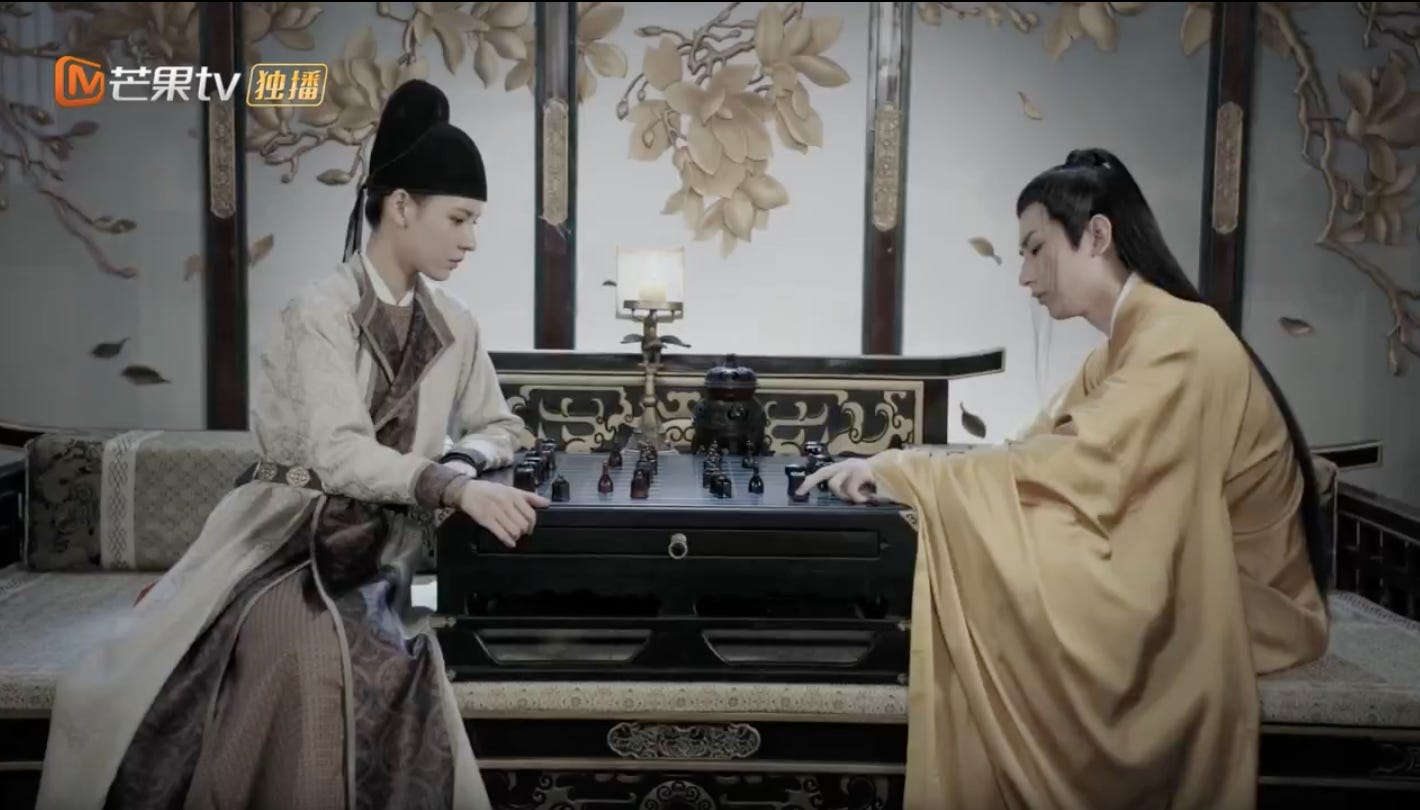 One of the show’s main themes (and a personal favourite) is the compelling insight that individuals with overlapping goals often work against one another to their detriment. The fact that they should but are unable to sustain a united front in their efforts for a worthy (or even a noble) cause is why the kingpin of villainy in this particular context keeps gaining the upper hand. There’s little doubt as to who the villain is — Qiu Ziliang — a powerful eunuch who controls the royal court and the largest army in the land. Also to his advantage is the fact that there are plenty of who will do his bidding because they wish to “borrow” the power he wields for their own ends. He is the obvious face of evil because of the flow-on effects of one man having too much power for its own sake. Garnering power has been for his own political survival and not for the flourishing of the populace at large. As long as he’s the one calling the shots, what happens to the common folk is a mere triviality. It’s a game to him. An extended chess game where he holds all the aces (to mix metaphors here) for now.