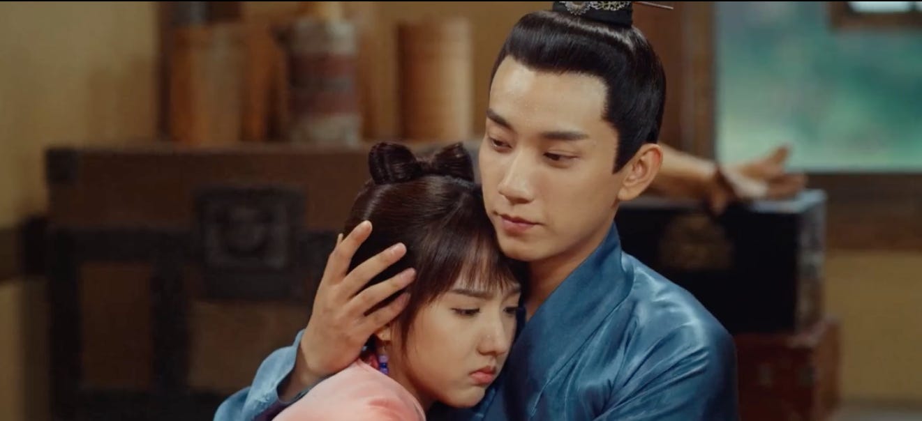 In an earlier incident after Chu Chu is rescued from her kidnapper, she lies feverishly unconscious and he’s sitting by her bedside holding her hand without any calculation to the proprieties of the day between an unmarried man and a woman. Even her adoptive brother notices the prince’s attentiveness. Later when Chu Chu wakes from a nightmare, she embraces him reflexively for fear that he will abandon her. Jinyu, not at all flustered by spontaneous gesture comforts her and reminds her that he will never leave her behind. They behave like two people who are already a couple or family, not like two people who work together to solve crimes or are merely allies in a cause. Long before the bolt of lightning hits, our prince has already taken a genuine liking to his beloved coroner. Despite his suspicions, despite himself.