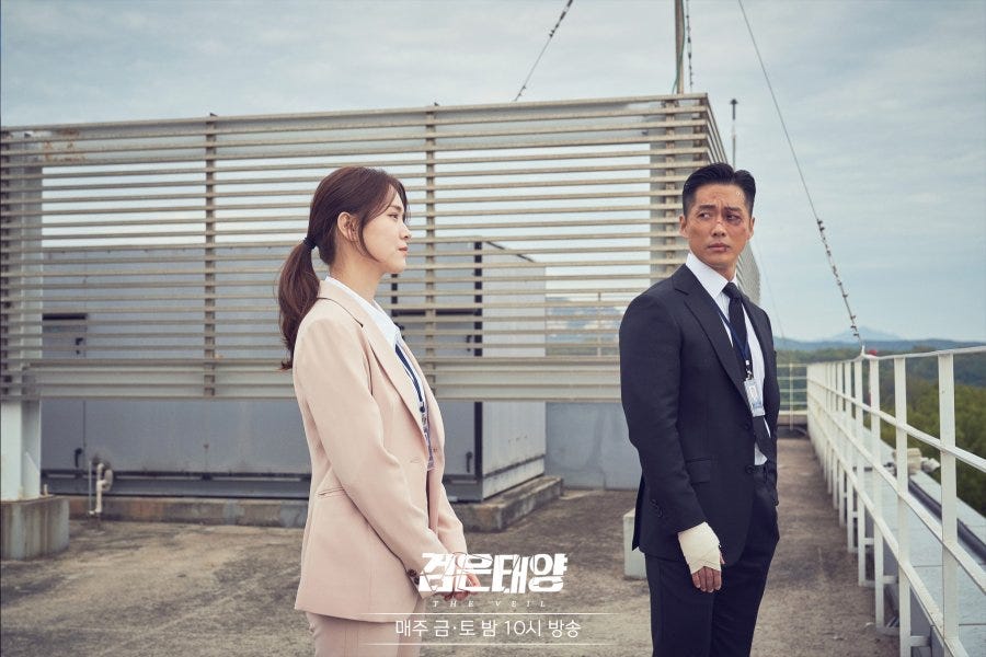That’s the same sort of sensation that I get when I’m watching The Veil. Although I was raised on a steady diet of action flicks/telly in my impressionable years and indulge in the guilty pleasure of a good fight scene as much as the next person, it’s not the reason why I’m a fan of this drama. Namgoong Min is reliably good value undoubtedly but ultimately it is the seemingly convoluted plot that keeps everyone on tenterhooks. The question keeps coming up… who can he/we trust? Even the characters routinely parrot this sentiment of foreboding and it has quickly turned into the show’s mantra: Don’t trust anyone.